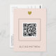 If you're looking for style on a budget, here it is. This minimalist design has just your names, a faux gold foil heart, and a QR code. This will be a link to your wedding website where your guests can RSVP, choose their menu options, and favourite song etc.