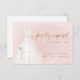 Elegant RSVP cards feature watercolor white wedding dress with sparkle faux gold glitter details on blush pink background.