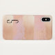 Pretty Samsung iPhone X case, with a watercolor paint stroke pattern in pink blush and gold. Personalise the single black letter monogram, for yourself or as a great gift to her.