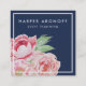 Blush and Navy Antique Peony Square Business Card