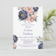 Celebrate your special day with this elegant watercolor wedding invitation featuring soft blush pink and deep navy blue peonies, beautifully accented with luxurious gold details. Perfect for modern, romantic, and timeless weddings, this floral design sets the tone for a chic and stylish celebration. Easily customise with your wedding details to create a keepsake your guests will treasure.