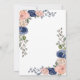 These trendy and stylish couples wedding shower invitations feature hand drawn flowers in navy blue and blush pink watercolors. Plenty of botanical green leaves and foliage decorate the bouquets. There is also a faux rose gold look rectangular geometric frame and modern handwritten script.