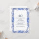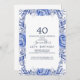 Blush and Navy Flowers Blue Wreath 40th Birthday Invitation