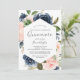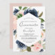 This blush and navy flowers white Quinceañera invitation is perfect for a floral 15th birthday party. The classic and elegant design features modern watercolor navy blue and blush pink flowers.