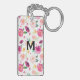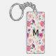 Blush and Pink Watercolor Peonies Pattern Monogram Key Ring