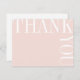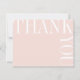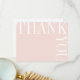Pastel blush rose pink and white typography feels modern and fresh in a unique and striking layout that literally pushes the borders of the page. A blank side leaves ample space for a longer and thoughtfully hand written note of thanks.