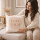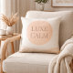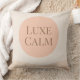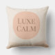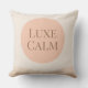 A feminine minimalist accent featuring a soft beige base, a centered blush circle, and taupe serif text reading “Luxe Calm.” Designed for neutral living rooms, bedrooms, or reading corners, this pillow adds gentle contrast and refined structure to layered, modern interiors.
