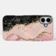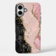Blush Black Gold Glitter Agate Name Script iPhone 16 Plus Case. Gold Blush Pink Glitter gemstone Agate iPhone Case. Chic girly sparkly Pink and black with Gold Glitter phone case personalise with her name in script typography.