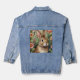 The Blush Blooms & Bunny Dreams jean jacket features a gentle tan and white watercolor bunny nestled among pastel pink flowers and lush green leaves, adding a delicate and heartwarming touch to your spring wardrobe.