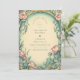 An enchanting blend of vintage and botanical elegance, this design features soft blush roses entwined with sage green leaves and delicate blue gradients. Framed in ornate gold and ivory curves, the invitation evokes a fairytale garden atmosphere with a classic Art Nouveau twist, perfect for a romantic and timeless wedding celebration.