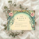 An enchanting blend of vintage and botanical elegance, this design features soft blush roses entwined with sage green leaves and delicate blue gradients. Framed in ornate gold and ivory curves, the invitation evokes a fairytale garden atmosphere with a classic Art Nouveau twist, perfect for a romantic and timeless wedding celebration.