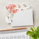 Custom printed envelopes with a pretty watercolor floral design in peachy pink colours. Personalise it with your return address printed on the back flap.