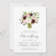 Elegant floral rehearsal dinner invitations feature a bouquet of watercolor blush pink and burgundy flowers with lush green botanical foliage and leaves. Personalise with your rehearsal dinner details beneath in a chic mix of block, serif and calligraphy typefaces. Includes space for both the ceremony rehearsal and dinner or celebration.