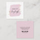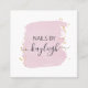 A simple design featuring a blush pink brush stroke with small gold dots. Personalise with your name (to keep the swashes on the name, it is best to enter in lowercase and make sure you keep the emojis at the beginning and end, as shown on the example name). Your contact details, including phone, email, website and social media handle are on the reverse side. Click the 'Pesonalize' button to add your details. You can customise further by clicking on the 'Click to customise further' link at the bottom of the Personalise box and use the design tool to remove icons for social media that you do not use, and reposition icons if necessary.
