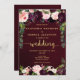 Blush pink and burgundy; a lavish floral appointment of deep cranberry burgundy red florals with precious pale pink peonies aglow against a sumptuous rich dark burgundy watercolor background with gold swashed wedding calligraphy with a formal layout. This invite can be customised to any occasion.