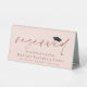 Blush pink graduation reserved table sign in blush pink with brass beige fonts and a black graduation cap.