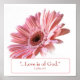Beautiful poster features a pink Gerbera daisy and Scripture from 1 John 4:7.