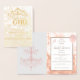 Cute & Girly Blush Pink Diamond Baby Girl Gold Script Baby Shower Folded Foil Card Invitation. It features diamond crown, diamond mirror; diamonds raining on the backgrounds, hand written script font text in gold and gray on a rose gold bokeh background, both for the front and the back. It's totally customizable by clicking the personalize or customize button. You can leave it as it is or take some graphics out. If you need any help, please contact me, I will be happy to help you customize your masterpiece invitation @Miri Creations - Created For You Only.