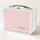 Blush Dusty Pink Modern Script Girly Monogram Name Metal Lunch Box