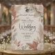 Blush and dusty rose watercolor florals with a faux rose gold sunburst accent create a soft romantic garden aesthetic suited for spring and summer wedding celebrations.The layout follows traditional formal wedding stationery structure with a centered typography hierarchy framed by a thin double-line border and symmetrical floral clusters. Watercolor roses and hydrangea blossoms appear in blush pink, dusty rose, peach, and cream tones, accompanied by delicate foliage, berries, and pampas grass accents that create a balanced botanical composition. A decorative faux rose gold sunburst element at the top introduces a subtle Art Deco influence and visually anchors the elegant calligraphy headline paired with classic serif text for names, date, and venue details.This is a flat printed image with a faux rose gold metallic effect, not actual raised foil or metallic material.