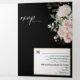 This blush floral black tri-fold wedding invitation design features beautiful chic neutral backgrounds of black or white with simple modern typography and elegant calligraphy to set a sophisticated tone for any style of event. Each product is embellished with gorgeous blush pink roses and peach and ivory hydrangeas arranged with lush eucalyptus and greenery leaf details, along with timeless geometric gold frames for a luxurious look. Mix and match this coordinating collection for an effortless personalised dream wedding aesthetic for a wide range of casual to formal styles. For more coordinating designs, this design is also available in pastel pink and navy blue. As with all of our design, if you have any questions or special requests please just ask.