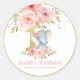 Blush Floral Cute Elephant 1st Birthday One Favour Classic Round Sticker