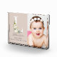 A beautiful, elegant baby girl birth stats photo acrylic block keepsake. This design features a beautiful blush pink background, and the baby's name initial L in white, and decorated with beautiful watercolor white roses and eucalyptus greenery. The baby's name is written below in hand lettered script typography, followed by baby's birth date and birth statistics. Baby's vertical orientation photo is displayed on the right. Copyright Personalised Home Decor, all rights reserved.