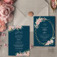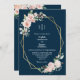 Blush Floral Navy Simple Monogram Details Wedding Invitation