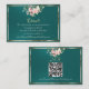 Blush Floral, QR Code - Teal Enclosure Card features a blush pink floral bouquet on a teal background framed with ribbon, details for more information on the front and QR code on the back. Designed to coordinate with the "Floral & Foil Botanical Wreath" Wedding Collection. To change details, click «Personalize». To move the text or change the text size, font, or color click «Click to customize further»