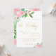 Pretty pink floral bouquets with greenery and lovely gold colour calligraphy on the front, and beautiful watercolor floral print on the back make this design perfect for a romantic spring or summer wedding.