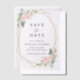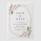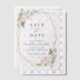 Invite friends and family in style and set the tone for your special day with this charming save the date card. Design features blush pink watercolor flowers, greenery and gold frame.