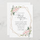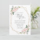 Invite friends and family in style and set the tone for your special day with this charming wedding invitation. Design features blush pink watercolor flowers, greenery and gold frame on white background.