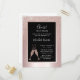 On a background of blush pink metallic foil, our elegant 21st Birthday party invitation features a feminine blush glitter ombre overlay with bubbling champagne glasses toasting the 21st birthday honoree. In a black frame with a blush foil border, you'll find example invitation text that you can easily revise on the personalisation template. On back of the postcard, you find sample text for a return address, a personal message, and a signature in a script font.