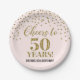 Blush Gold Confetti Cheers to 50 Years Birthday Paper Plate