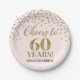 Blush Gold Confetti Cheers to 60 Years Birthday Paper Plate