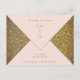 Gold Glitter and Blush Envelope Change the Date. Wedding. Back with Last Names and Wedding.