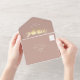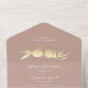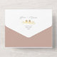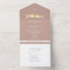 Romantic blush pink all-in-one wedding invitation featuring gold foil lovebirds and elegant typography. This folded design includes your full wedding details, RSVP card with meal preferences, and space for your wedding website. A convenient, eco-friendly option—no envelope needed. Perfect for modern couples seeking elegance with ease.