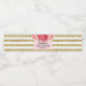 Custom text baby shower water bottle label in pink and white with gold stripes and pink watercolor flowers, please note gold is photographic effect only.