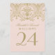 Blush Gold Vintage Glamour Wedding Table Number