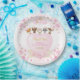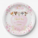 This adorable paper plate features girly pink & gold hearts confetti, blush watercolor flowers and cute woodland animals