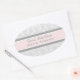 Baby shower thank you favour tag sticker in elegant light pastel pink, grey and white classic floral damask pattern. Customisable with your own text, contact us for a colour change. The perfect way to decorate your baby shower favours and thank your guests for being a part of your special day.