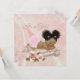 Blush baby shower invitation with adorable African American baby girl on a pretty floral pillow on an elegant blush pink and ivory lace background. These beautiful blush pink baby shower invitations are easily customised with the text of your choice on the front and back in the font style and colour you prefer.