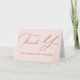 Elegant folded wedding thank you card featuring "Thank You" in a black calligraphy script on the front with your last name displayed below with a blush background. The inside of the wedding thank you card displays your custom thank you message and first names in black lettering. Design coordinates with our Modern Elegance wedding collection.