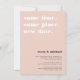 Need to postpone or reschedule your wedding? Let guests know with these modern and lighthearted cards in chic blush pink, soft grey and crisp white. Design features "same time, same place, new date" at the top with your new wedding date and details beneath.