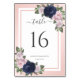Elegant navy blue and blush floral wedding table numbers. Matching items available.