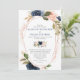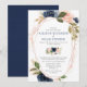 Blush navy gold modern floral watercolors wedding invitation
