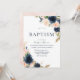 Blush & Navy Peach Flowers Baptism Christening Invitation