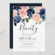 Blush & Navy Watercolor Ninetieth 90th Birthday Party Invitation