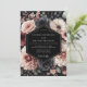 Embrace a dramatic and romantic atmosphere with this moody floral design. A sophisticated arrangement of blush pink roses, deep burgundy dahlias, and charcoal blooms emerges from a dark, painterly background. Subtle hints of muted green foliage add a touch of natural elegance to the stunning, high-contrast composition.