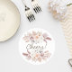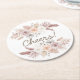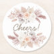 Add a charming and elegant touch to your reception with this blush floral wedding coaster featuring delicate pampas grass and soft botanical accents. The symmetrical floral design frames the playful “Cheers!” message, creating a perfect blend of romance and celebration.